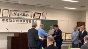 AKASAKA 2019 赤坂2019 防犯功労感謝状伝達式 2019年7月3日に赤坂警察署にて、防犯功労感謝状伝達式に出席しました。 一ツ木通り商店街が『地域安全運動功労 団体賞』表彰されました。 Post Share